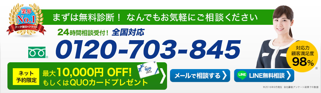 データ復旧専門10 年以上の経験で培った高度な技術と、信頼のサービスでお選びいただいております。出張サービスを業界内でもいち早くスタートさせ、お客様のニーズに合わせたサービスでご満足いただいております。